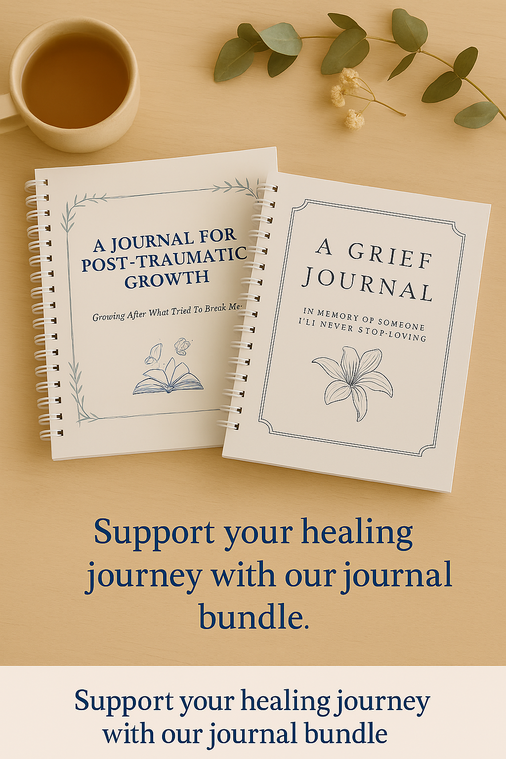 This carefully curated bundle includes both *A Grief Journal – In Memory of Someone I’ll Never Stop Loving* and *A Journal for Post-Traumatic Growth*. Thoughtfully designed to support you through grief, trauma, and healing, these two journals offer gentle prompts, grounding tools, and meaningful space for reflection.