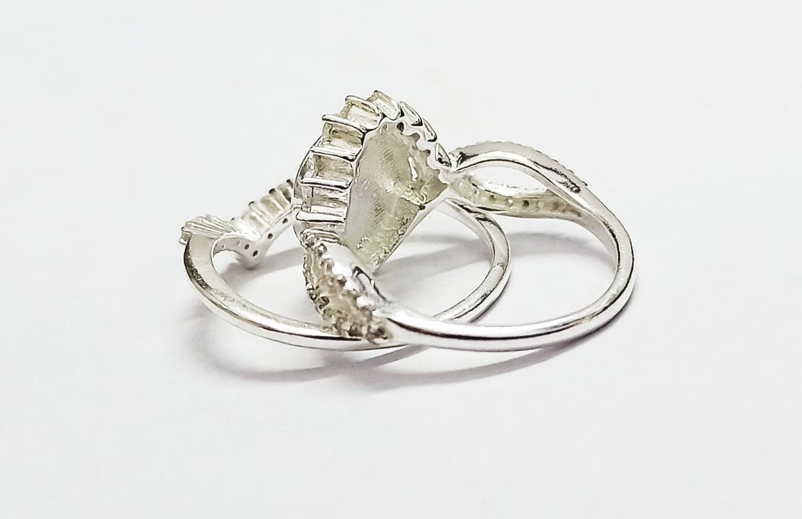 A breathtaking Sterling Silver stacking ring set, featuring two beautifully designed rings adorned with cubic zirconia stones.