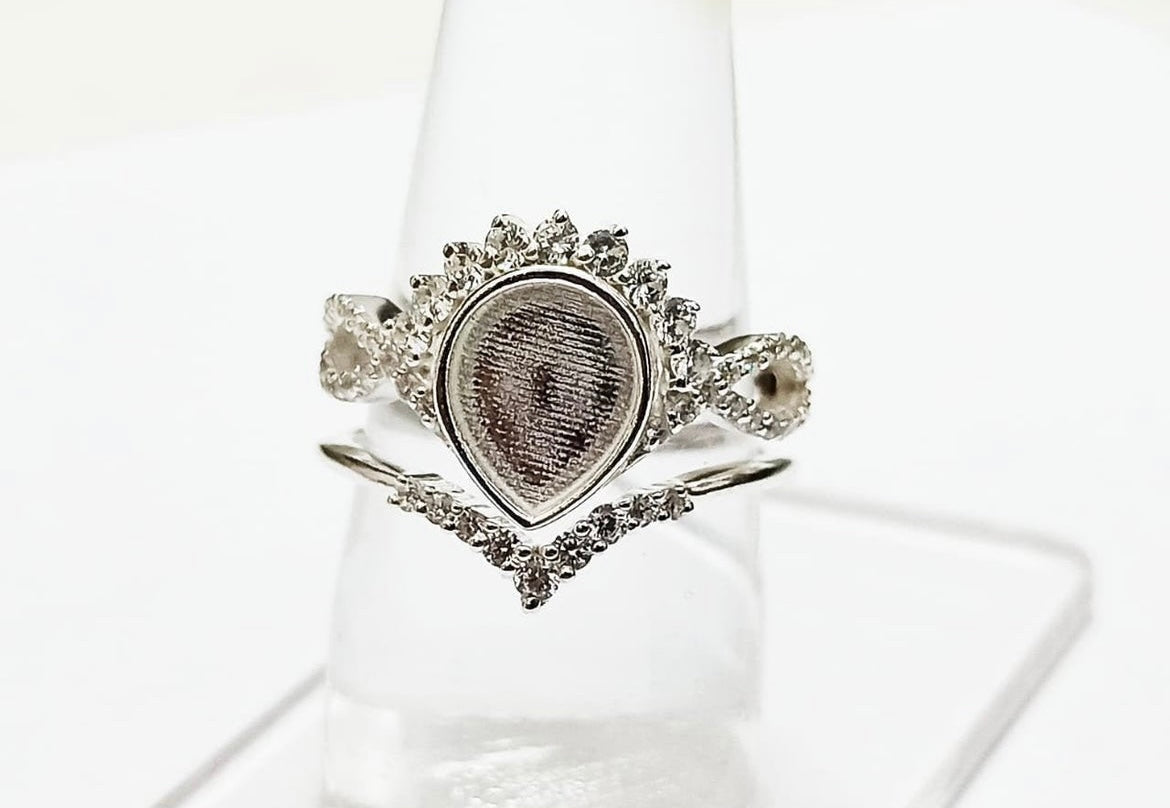 Stacking Ring: Designed to fit perfectly alongside the pear ring, also set with sparkling cubic zirconia stones.